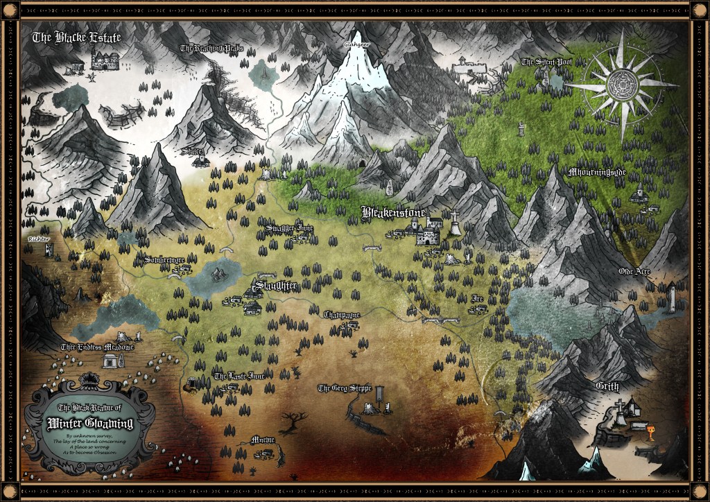 A tale of meandering endeavours and strange places, Overmorrow is set in the bleak realm of Winter Gloaming, a place so wrong as to become obsession; a rictus, lawless rime, ravens against the glass, and laughter upon the wind…